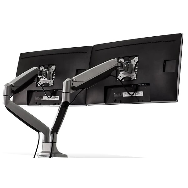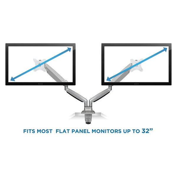 - Raise your monitor to a comfortable viewing height with this dual monitor desk mount