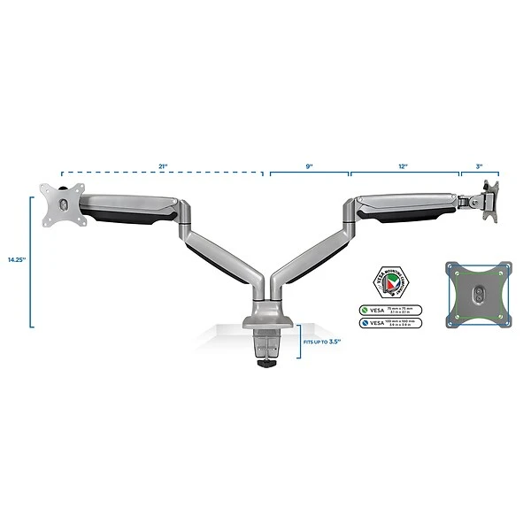 - Each arm securely holds up to 20 lbs. to fit most monitors (40 lbs. total load on height-adjustment assembly)