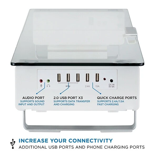 Having a monitor and other supplies on your desk can cause you to feel overcrowded. Not only does this glass monitor stand have a clean, contemporary look, it helps to organize your desk and make room so that you feel more comfortable while you work.