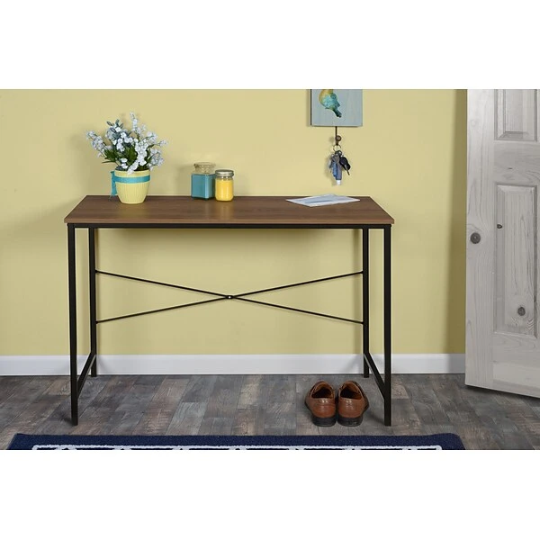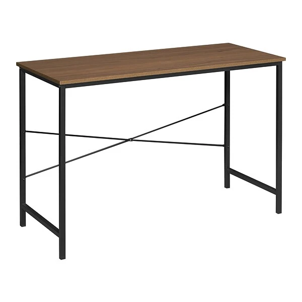 Have the best of both worlds with Niche Soho desks. Combine the modern elegance of an industrial black metal frame with the charm of a rustic woodgrain surface. Its Urban Walnut finish will match any color scheme. This lightweight desk is a great choice for home offices, dorm rooms, libraries and classrooms. Or use this versatile desk as a table or buffet. It also looks great in entryways, kitchens, craft rooms and more. The frame is reinforced with cross-bracing for extra stability and the surface edges are finished with a matching wood grain. Modern and durable, make Niche Soho desks a part of your home or office today.