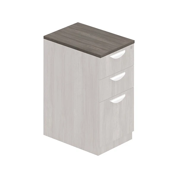 This contemporary Offices to go 16″ pedestal top comes in artisan gray color. It’s brand-new and offers the warmth of neutral gray wood tones on all Superior laminate desking and storage components. Its rectangular form and laminated surface are perfect for offices. All Superior laminate desking products are in compliance with stringent emission guidelines set out by the GREENGUARD Environmental Institute under the standards for low-emitting products and materials.