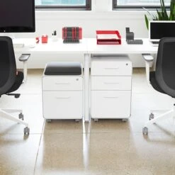Poppin’s best-selling Stow File Cabinet is the stylish shelter your files are seeking. Powder-coated steel construction with peek-a-boo matching steel interior keeps documents and doo-dads super safe. Locking drawers and attachable casters with a full 360 degree swivel are bound to get you lockin’ and rollin’.