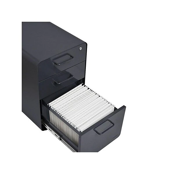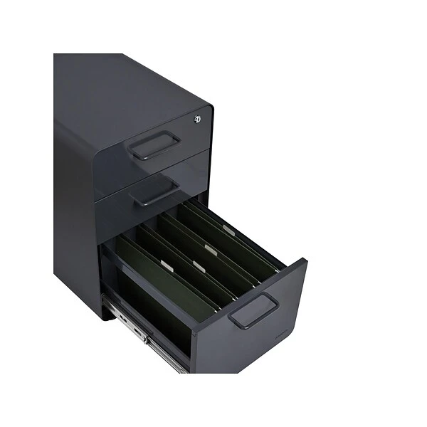 Keep everything from contracts to tax returns safe in this file cabinet. Two utility drawers and one for hanging files offer plenty of space for letter- and legal-sized documents. Powder-coated steel construction makes the Popping Stow cabinet more durable while 360-degree swivel casters ensure you can roll this heavy-duty unit when necessary but lock into place when required.