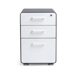 This Poppin slim stow file cabinet is designed for use with 47″ desks, providing plenty of room for both your docs and your knees. The powder-coated steel construction with a peekaboo matching steel interior keeps your stuff super safe. Locking drawers and attachable casters with a full 360-degree swivel are bound to get you locking and rolling.