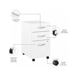 Bush Business Furniture Hybrid 3-Drawer Mobile File Cabinet, Letter/Legal, White, 20″ (HYF216WHSU-Z)