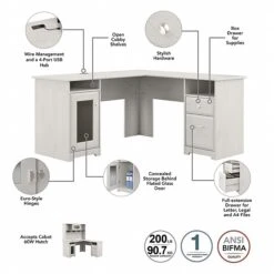Bush Furniture Cabot 36″-42″H 3 Position Sit To Stand Corner Bookshelf Desk, Espresso Oak (WC31816)