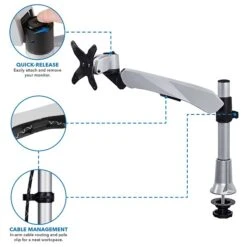Mount-It! Modular Desk Mount Adjustable Monitor Arm, Up To 30″ Monitors, Gray/Silver (MI-35116)