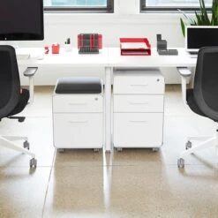 Poppin Stow 3-Drawer Vertical File Cabinet, Mobile/Pedestal, White, Letter/Legal, 20″D (100425)
