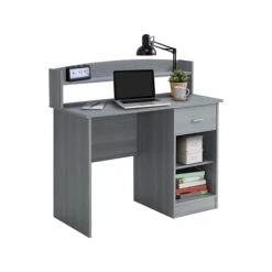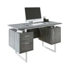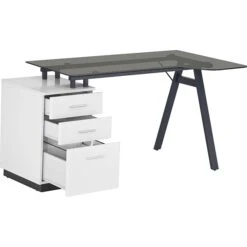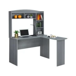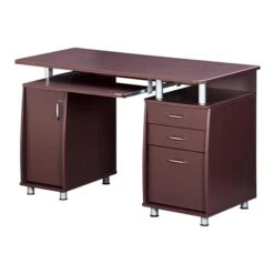 Techni Mobili 59″ L-Shaped Desk With Drawers And File Cabinet, Walnut/Black (RTA-4809DL-WAL)