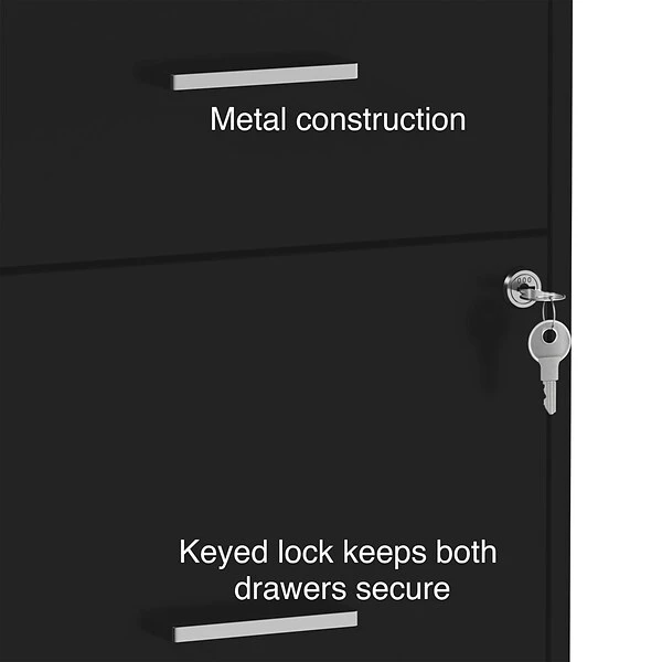 Organize your home or professional workspace with the Staples 4-Drawer vertical file cabinet. Keep all your letter-sized documents secure and tucked away in four 18” depth drawers. This file cabinet comes equipped with one factory installed lock and key, controlling the top two drawers for peace of mind and security. The sleek black finish and polished handles keep your office space looking contemporary and organized . This cabinet is Backed by a 7-year limited warranty, keeping you satisfied for years to come.