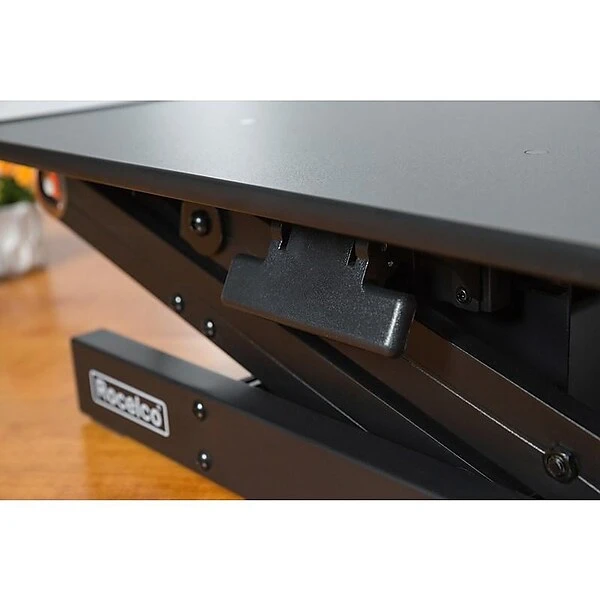 Customize your workstation with this Rocelco sit-to-stand adjustable desk riser. The spacious surface holds up to two monitors and a laptop, giving you access to essential equipment whether you are sitting or standing. Five adjustable heights let you select the perfect configuration for all your daily tasks, and the simple push-to-adjust setup makes it easy to transition between positions. This Rocelco sit-to-stand adjustable desk riser sits on top of your desk, allowing for fast, simple installation.