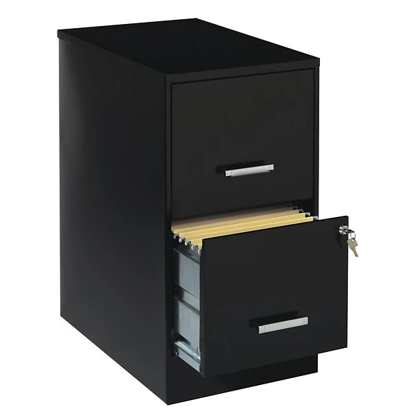 Complete your workstation setup and keep documents close at hand with Space Solutions file cabinets. The two high-sided drawers accept letter-size hanging file folders and provide storage for other office essentials. The lock secures both drawers to prevent unauthorized access to your contents. Each drawer features our patented glide suspension for a smooth and quiet opening and closing. Three-quarter drawer extension prevent tipping. These file cabinets are best for personal or occasional file retrieval for your small office or home office. The neutral colors will blend seamlessly with your other office furnishings. Assembly of the handles required, hardware included.