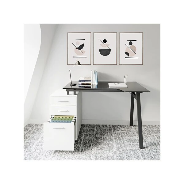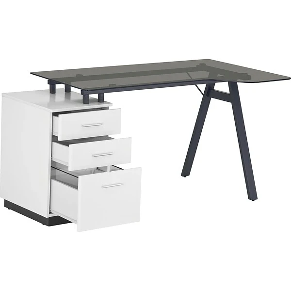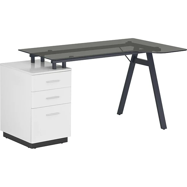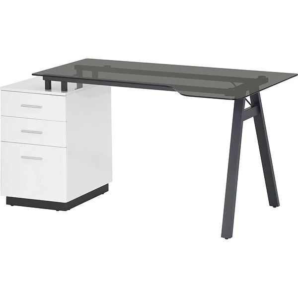 The Techni Mobili home office computer desk brings the perfect combination of ample storage options, excellent functional features, and sophisticated style. This desk brings contemporary design with a clean-lined frame made of black powder-coated steel. The rectangular tabletop surface is crafted from black smoke tempered glass. The side storage cabinet is made of MDF. It includes two storage drawers, and a file cabinet provides sufficient space to store your essential files and accessories while you continue working on your projects.