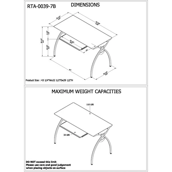 Techni Mobili Glass Top Computer Desk, assembly instructions, and owner’s manual.