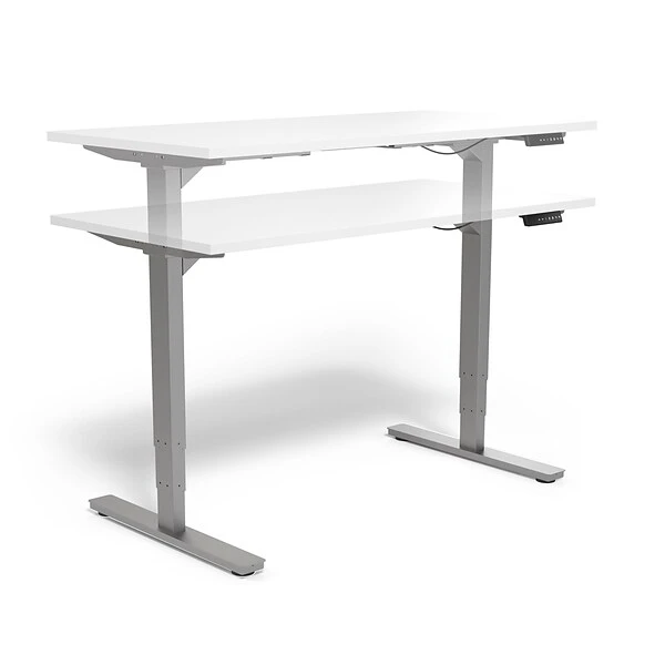 - Electric sit-stand adjustable desk; top laminate finished in white