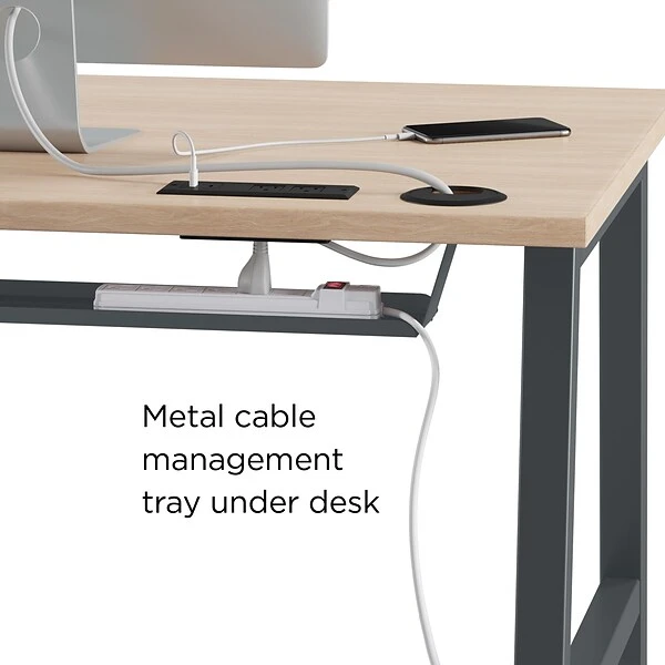 - Fabric-wrapped modesty panel and metal cable management tray under the top for easy cable organization