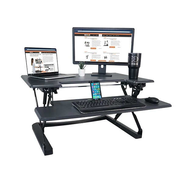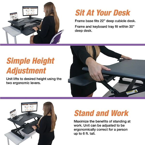 - Raise and lower workstation by lightly squeezing the ergonomic levers
