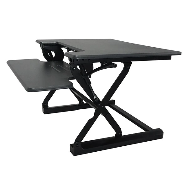 - Large 36″W x 23″D desk surface accompanied by 35″ wide x 14″ deep removeable keyboard tray