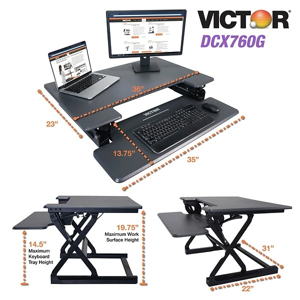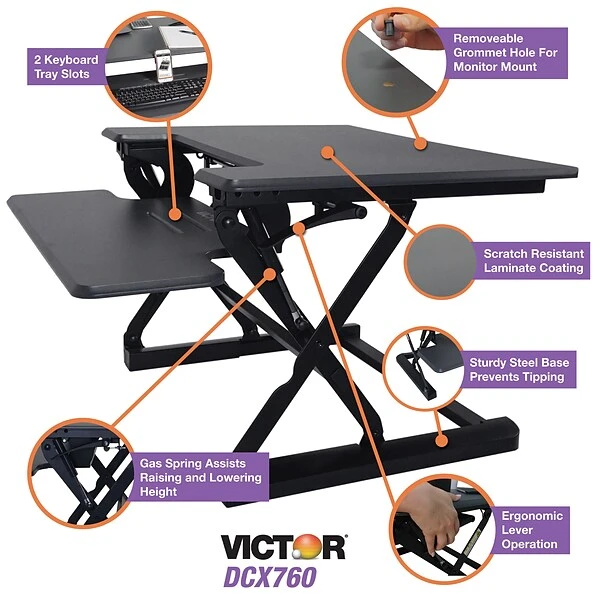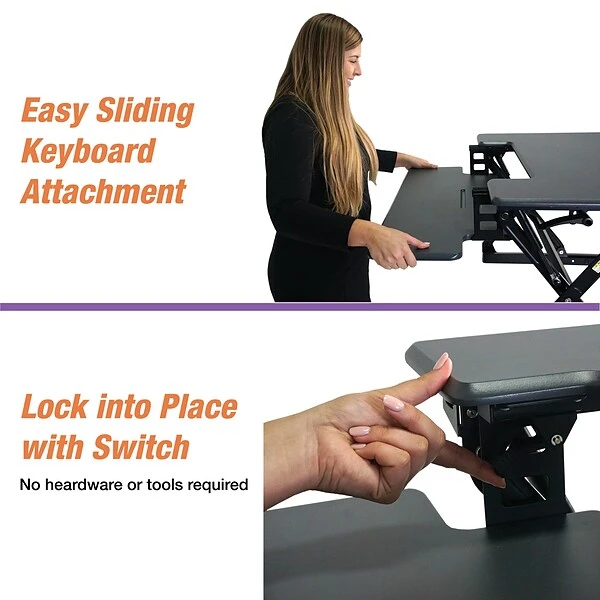 - Adjustable desk sits on top of any desk or table. No attachments required.