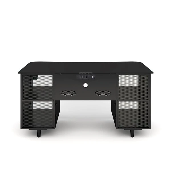 - Features power strip, cup holder, and headphone hook.