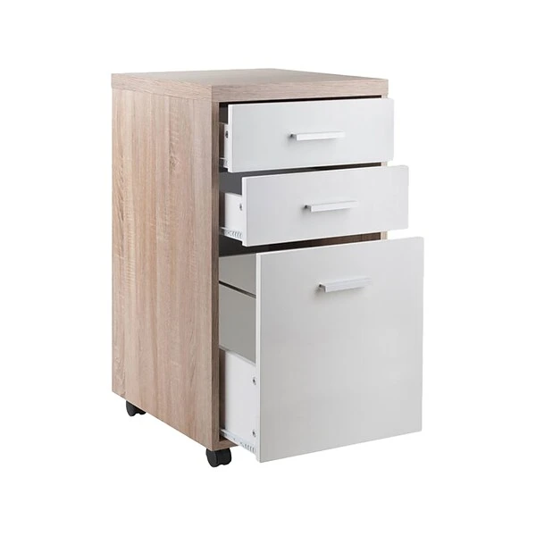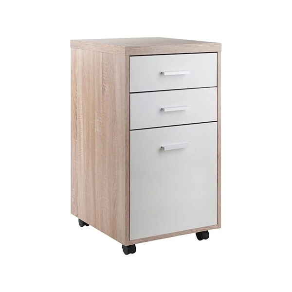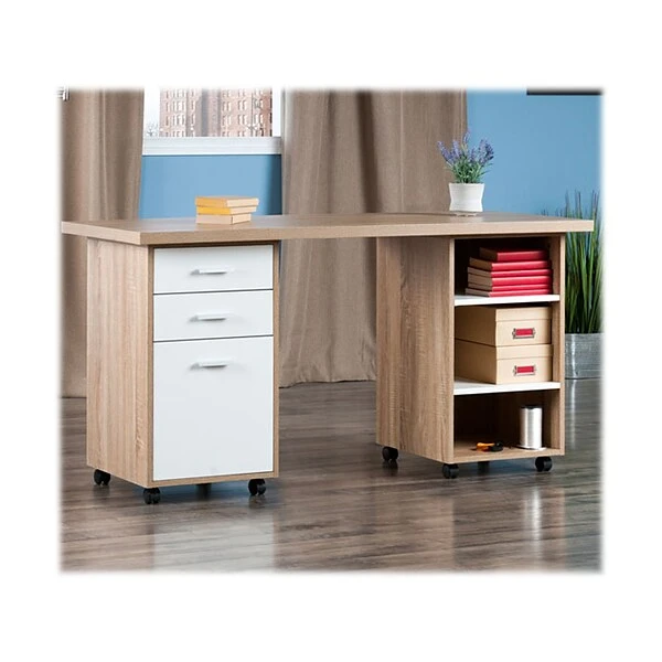 Use the sturdy and compact Winsome Kenner modular workstation desk set to update the look of your study room, library, or office. This modular desk set includes three-drawer mobile file cabinet, storage cart with three shelves both connected by modular desk tabletop.